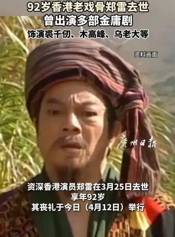 香港知名老戏骨郑雷于2026年3月25日去世股票配资官方网站,4月12日在香港举办追悼会,享年92岁。